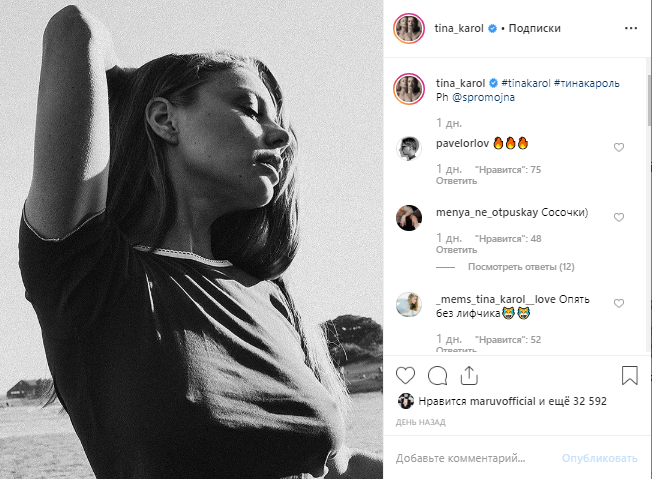 Черно-белое фото также оценила еще одна провокационная певица украинского шоу-бизнеса - Maruv. Она оставила под снимком "лайк".