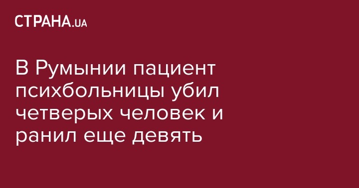 В Румынии пациент психиатрической больнице в городе Сепока убил четверых человек и еще девять ранил. Об этом сообщает "Укринформ".