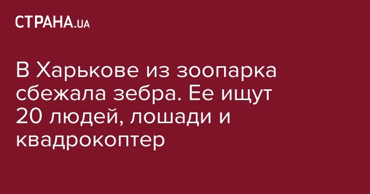 Утром 18 августа из харьковского экопарка Фельдмана убежала зебра, которую не могут найти и поймать до сих пор. Об этом со ссылкой на представителя комплекса Алексея Костюченко сообщает UA:Харків.