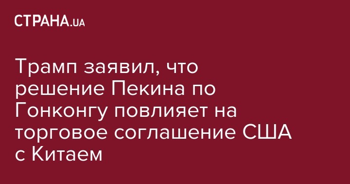 Трамп заявил, что решение Пекина по Гонконгу повлияет на торговое соглашение США с Китаем