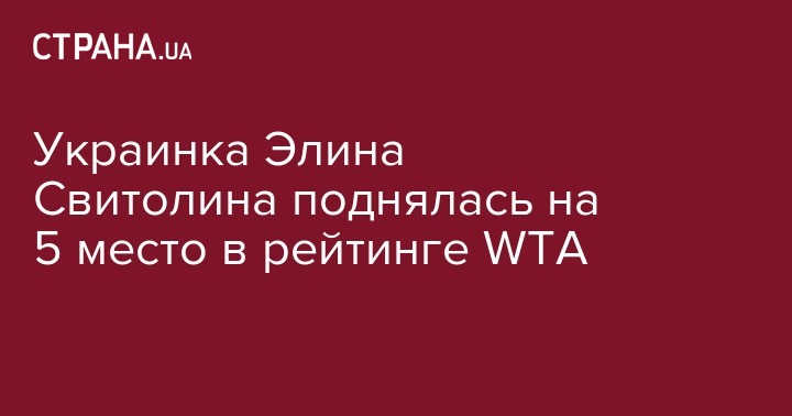 Украинская теннисистка Элина Свитолина занимает пятое место в рейтинге Женской теннисной ассоциации (WTA). Об этом свидетельствует информация на ATP Tour