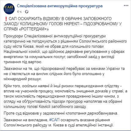 Скриншот: Facebook/Спеціалізована антикорупційна прокуратура
