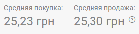 В обменках по состоянию на 07:30 средняя покупка 25,24 грн, средняя продажа - 25,30 грн. В обед котировки такие: 25,25 грн - покупка и 25,32 грн - продажа. Как видим, доллар подорожал всего на пару копеек. Ситуация на 17:00 показала среднюю покупку - 25,23 грн и продажу - 25,30. То есть курс на копейку понизился в покупке и не изменился в продаже по сравнению с утренними показателями.