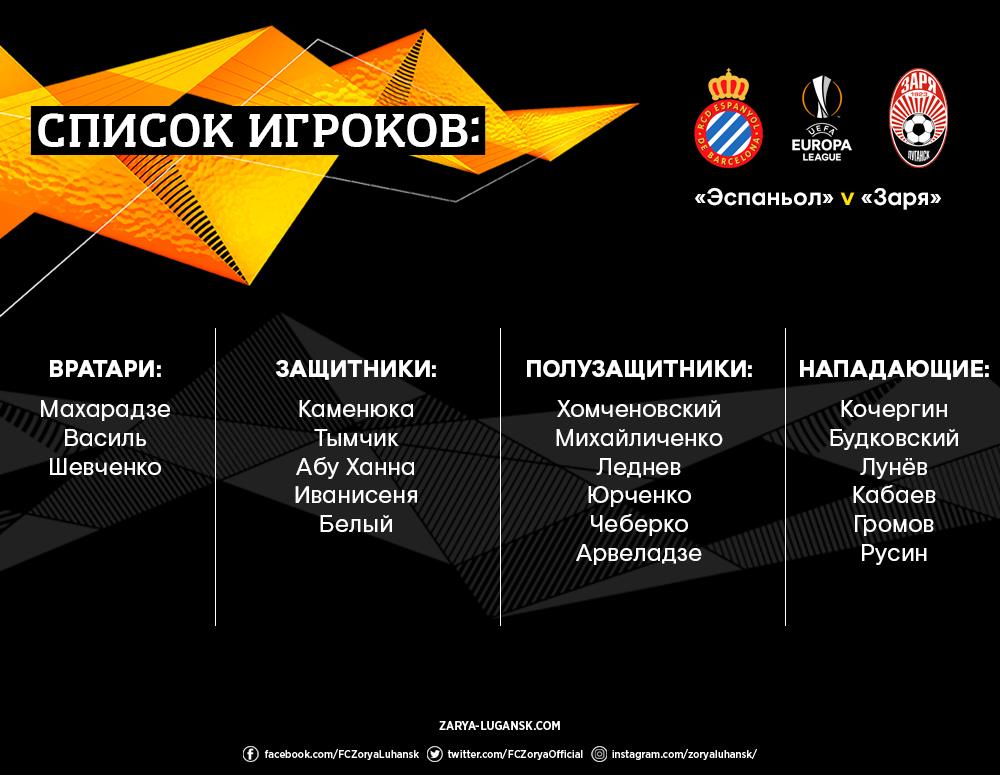 Лига Европы, плей-офф. Тренер Зари на игру против Эспаньола взял в Барселону 20 футболистов
