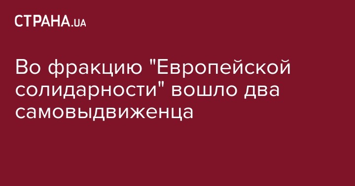 Двое избранных депутатов-самовыдвиженцев присоединились к фракции партии экс-президента Порошенко "Европейская солидарность". Об этом со ссылкой на источник в политсиле пишет "Украинская правда".