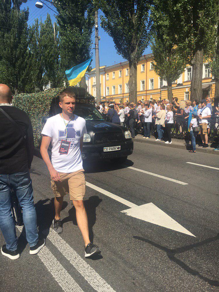 11:36 Марш ветеранов АТО стартовал под аплодисменты собравшейся публики. Во главе колонны - два внедорожника, закамуфлированных зеленой сеткой, а также матери погибших воинов. Движение колонны координируют представители С14. В частности, среди них замечен Андрей Медведько, который обвиняется в убийстве журналиста и публициста Олеся Бузины