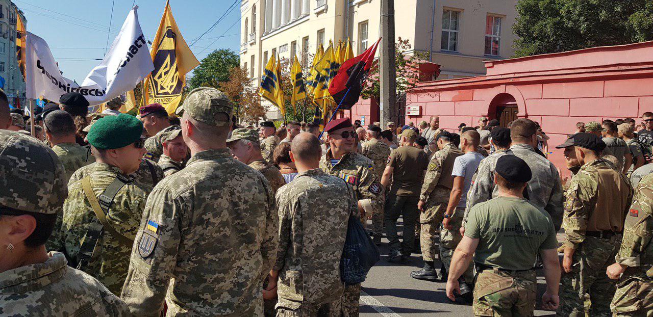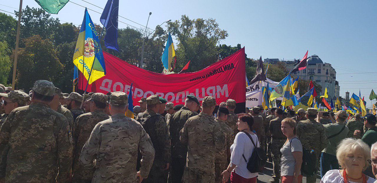 С 11:00 до 13:00 свое шествие проведут и националисты. "Марш защитников Украины", в котором заявлены участники АТО, семьи погибших и волонтеры, пройдет от парка Шевченко до Майдана. Там во второй раз за день исполнят гимн. После этого военные капелланы ПЦУ проведут молебен по погибшим на Михайловской площади.