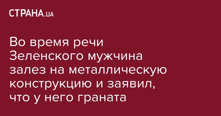 Во время речи Зеленского мужчина залез на металлическую конструкцию и заявил, что у него граната