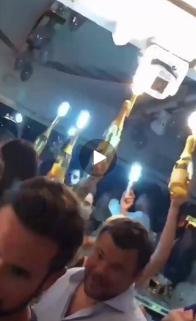 В распоряжении "Страны" оказалось видео, как Андрей Богдан веселится в шумной и веселой компании. Он возглавил процессию девушек с глубоким декольте, которые несли бутылки с шампанским под звуки гимна Украины.