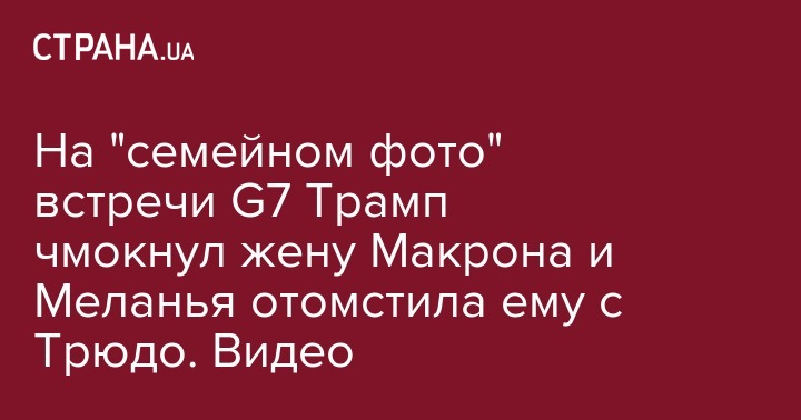 На "семейном фото" встречи G7 Трамп чмокнул жену Макрона и Меланья отомстила ему с Трюдо. Видео