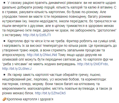 "Идеальное блюдо из картофеля должно быть нежирным, холодным, приготовленным в кожуре и дополненным овощами. Ужас, скажете вы. Но именно так вы сдерживайтесь от переедания и лишних жиров, не съедите образованные из масла альдегиды, сохраните (...) витамины и минералы и переведете крахмал в нужную, резистентную форму", - отмечается в опубликованном сообщении.