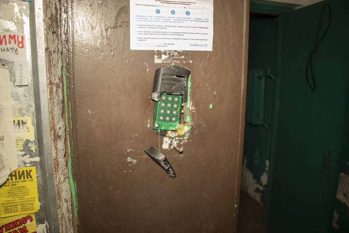 В Киеве дебошир разгромил парадное кувалдой и грозил взорвать полицейских. Фото и видео