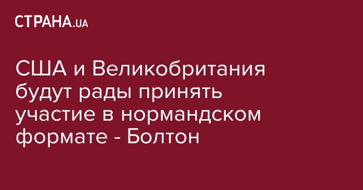 США и Великобритания могут присоединиться к нормандскому формату урегулирования ситуации на Донбассе, если участники переговоров не будут против. Об этом заявил советник по вопросам национальной безопасности США Джон Болтон, сообщает "Радио Свобода".