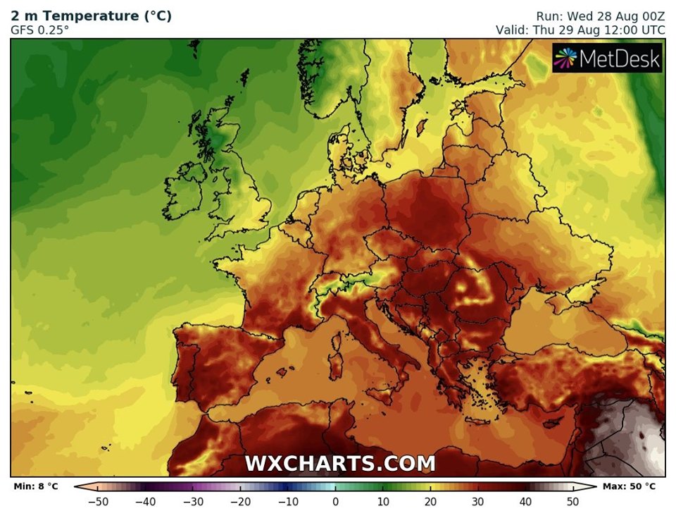 По данным Диденко, в целом в Украине в четверг, 29 августа, будет сухо и солнечно. Посвежеет на севере и востоке Украины. Столбики термометров опустятся до +22...+26 градусов, а в Сумской и Харьковской областях - до +20 градусов. В центральных регионах - Винницкой, Черкасской, Кировоградской, Полтавской и Днепропетровской областях - ожидается +25...+28 градусов. На юге и западе Украины будет теплее, в течение дня +28...+32 градуса.