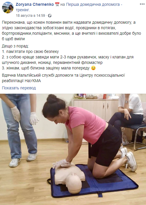 Впрочем, Зоряна не такой уж и профан: на днях она прошла курсы первой медпомощи и теперь умеет делать непрямой массаж сердца.