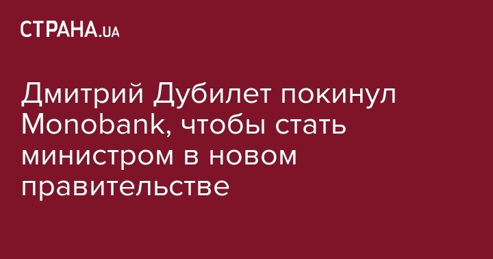 Соочредитель Monobank Дмитрий Дубилет покидает компанию, чтобы занять пост министра в новом правительстве. Об этом в своем телеграм-канале заявил сооснователь Monobank Олег Гороховский.