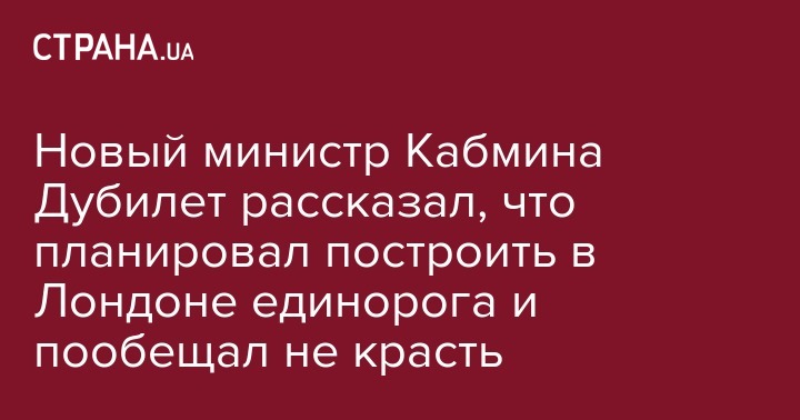 Новый министр Кабмина Дубилет рассказал, что планировал построить в Лондоне единорога и пообещал не красть