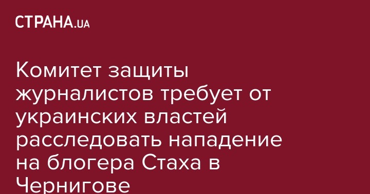 Международный Комитет защиты журналистов заявляет, что украинские власти должны немедленно расследовать нападение на блогера и журналиста Игоря Стаха, которого избили 29 августа в Чернигове. Об этом сказано в заявлении на сайте организации