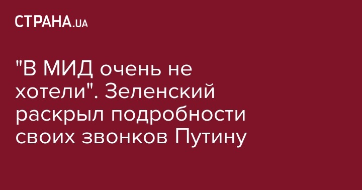 "В МИД очень не хотели". Зеленский раскрыл подробности своих звонков Путину
