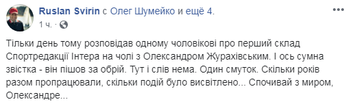Александр Жураховский работал на телеканалах "Интер" и "Перший національний", в последнее время был ведущим на радио "Эра". Царствие Небесное!