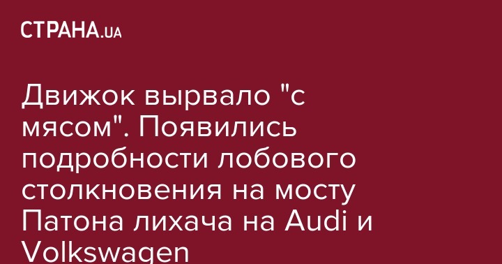 Движок вырвало "с мясом". Появились подробности лобового столкновения на мосту Патона лихача на Audi и Volkswagen