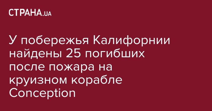 У северного побережья острова Санта-Крус в штате Калифорния, США, где 2 сентября затонуло прогулочное судно Conception, найдены тела 25 людей. Еще девять человек числятся без вести пропавшими. Об этом сообщило во вторник, 3 сентября, агентство Associated Press со ссылкой на Береговую охрану США. Его цитирует ТАСС.