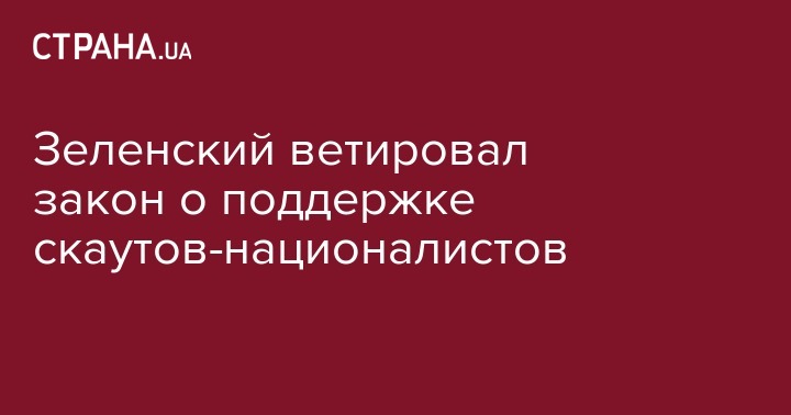 Президент Владимир Зеленский вернул Верховной Раде закон о государственном признании и поддержке национальной скаутской организации "Пласт". Об этом сообщает сайт парламента.