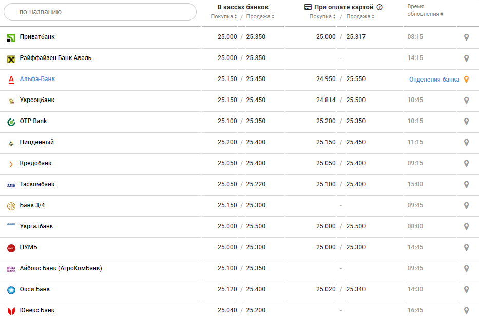 В банках курс доллара с утра был такой: покупка 24,90 грн от до 25,20 грн, продажа от 25,23 грн до 25,60 грн. В обед ситуация не изменилась.к вечеру доллар покупали за 25-25,1 грн. продавали за 25,22-25,4 грн. В разных банках курс немного отличался в течение всего дня.