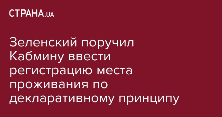Зеленский поручил Кабмину ввести регистрацию места проживания по декларативному принципу