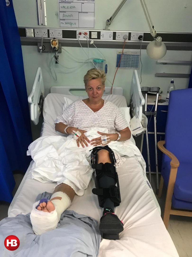 Валерия Гонтарева заявила, что она находится в одном из лучших госпиталей Великобритании, связанных с ортопедическим лечением. Она показала вид из окна своей палатой, а также аппараты, к которым она подключена и поврежденную ногу. По ее словам, на костылях ей предстоит передвигаться еще 4 - 6 месяцев.