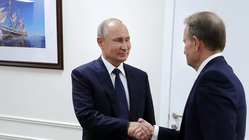 Там же, в кулуарах форума, российского президента сфотографировали с Виктором Медведчуком. На этой встрече Путин подтвердил скорый обмен