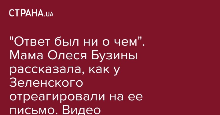 "Ответ был ни о чем". Мама Олеся Бузины рассказала, как у Зеленского отреагировали на ее письмо. Видео