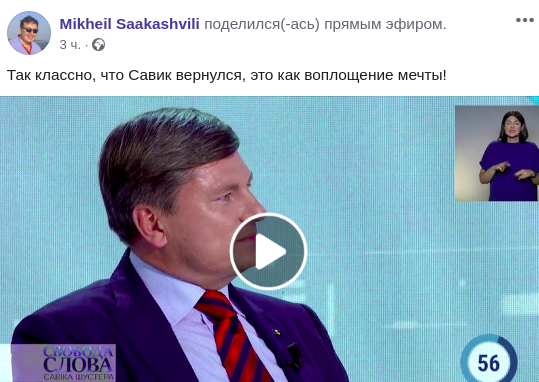 Экс-губернатор Одесской области Михаил Саакашвили изо всех сил радовался тому, что шоу снова в эфире.