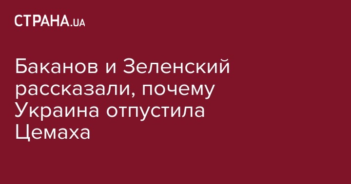 Баканов сказал, что решение об освобождении Цемаха было взвешенным: "Решение не было спонтанным, а хорошо взвешенным со стороны президента, поскольку отсутствие Цемаха в списке на обмен автоматически предусматривало прекращение переговоров с Россией. Кстати, как и отсутствие прямого авиакоридора из Москвы".