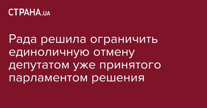 Рада решила ограничить единоличную отмену депутатом уже принятого парламентом решения