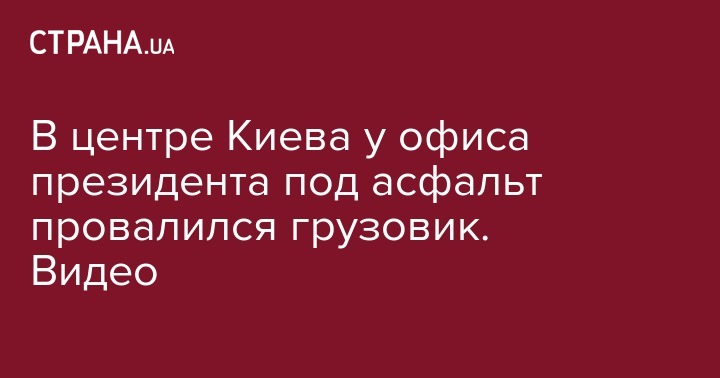 В центре Киева у офиса президента под асфальт провалился грузовик. Видео