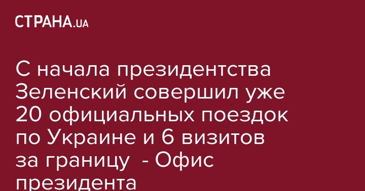 "По информации, предоставленной Департаментом по вопросам Государственного протокола и церемониала, с 20 мая 2019 года президентом Украины Владимиром Зеленским было осуществлено 6 зарубежных визитов и 20 рабочих поездок в пределах Украины", - сообщили в пресс-службе.