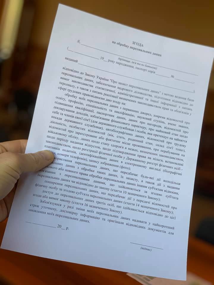 "Есть один документ, который меня просто бесит - "Згода на обробку персональних даних". Граждане вынуждены заполнять его при малейшем чихе. Вы не подумайте, я чту GDPR и закон "О защите персональных данных". Но какое заявление вы бы ни заполняли, высока вероятность, что вас попросят вдогонку к нему заполнить и этот документ… Хочу от этого заявления, где можно, избавиться", - написал Дубилет в Facebook.