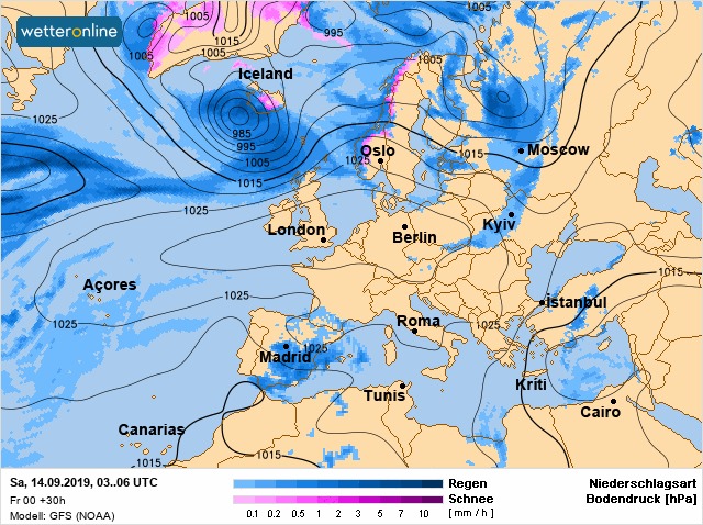 "В Киеве грядущая синоптическая перспектива - очень интересная. Ближайшей ночью и завтра утром в столице пройдет дождь, днем в субботу прояснится, в воскресенье - без существенных осадков. Однако, поскольку мы окажемся уже в тылу фронта, Киев окажется в прохладном воздухе: в течение 14-15 сентября предполагается около +20 градусов", - написала Наталья Диденко.