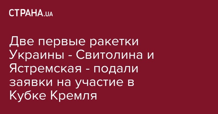 Первая и вторая ракетки Украины Элина Свитолина и Даяна Ястремская подали предварительную заявку на турнир WTA Premier (Кубок Кремля), который будет проходить с 14 по 20 октября в Москве. Об этом сообщает "Большой теннис Украины".