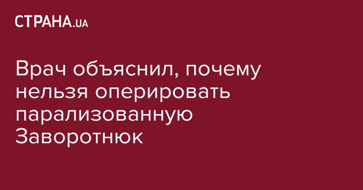 Нейрохирург, специалист в области заболеваний головного мозга, сотрудник московского Центра радиохирургии НИИ имени Склифосовского Вячеслав Рак, объяснил, почему актрисе Анастасии Заворотнюк противопоказано хирургическое лечение. Об этом передает Rg.ru.