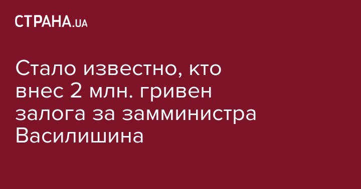 Стало известно, кто внес 2 млн. гривен залога за замминистра Василишина