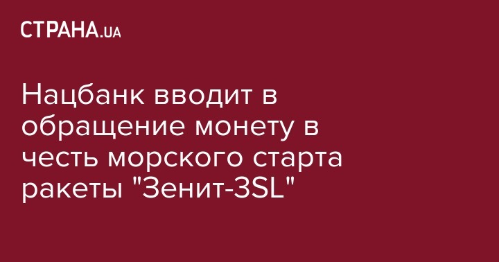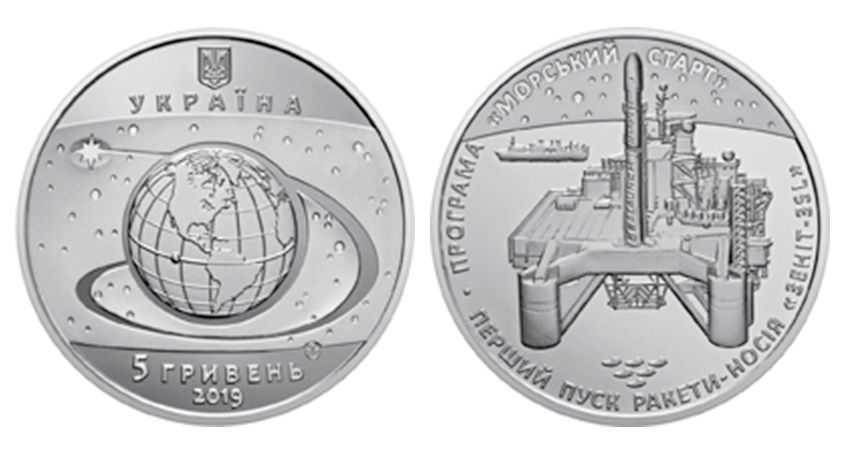 С 19 сентября 2019 года НБУ вводит в обращение памятную монету номиналом в 5 гривен "Первый пуск ракеты-носителя "Зенит-3SL".