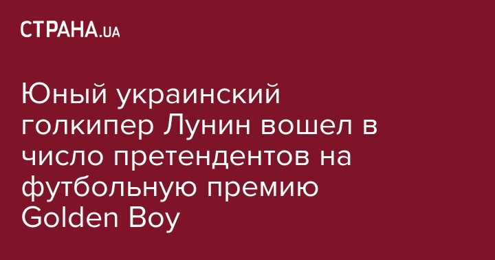 Награда Golden Boy вручается лучшему молодому футболисты в возрасте до 21-го года. Помимо Лунина, на награду претендуют Джанлуиджи Доннарумма ("Милан"), Маттейс Де Лигт ("Аякс"), Фил Фоден ("Манчестер Сити"), Джастин Клюйверт ("Рома"), Бубакар Камара ("Марсель") и другие футбольный таланты.