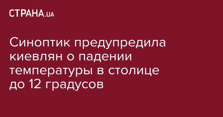 В Киев в среду, 18 сентября, придет резкое похолодание с падением температуры до +12 градусов. Об этом на своей странице в Facebook написала синоптик Наталка Диденко.