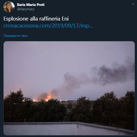Во вторник, 17 сентября, на севере Италии произошел взрыв на заводе нефтегазовой компании Eni. Об этом пишет РИА Новости
