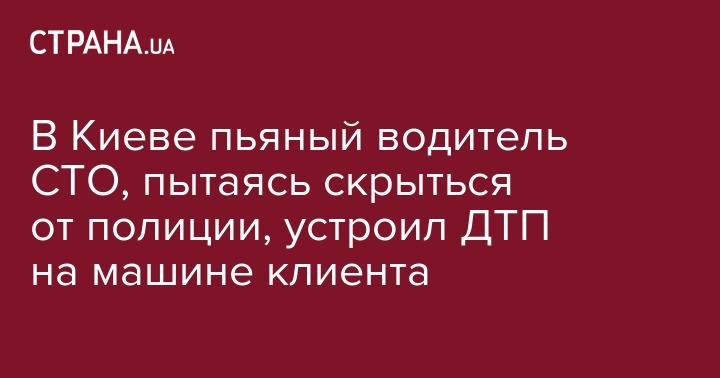 В ночь с понедельника на вторник, 17 сентября, в Киеве пьяный работник СТО на машине клиента устроил ДТП, пытаясь скрыться от полиции. Об этом сообщает "Информатор"