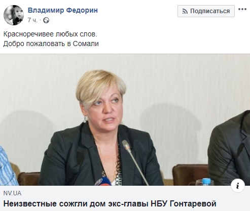 Блогер Андрей Головачев также придерживается версии, что дом Гонтаревой действительно сожгли ее оппоненты. С целью оставить экс-главу Нацбанка за границей и не мучаться с доказательством ее вины.