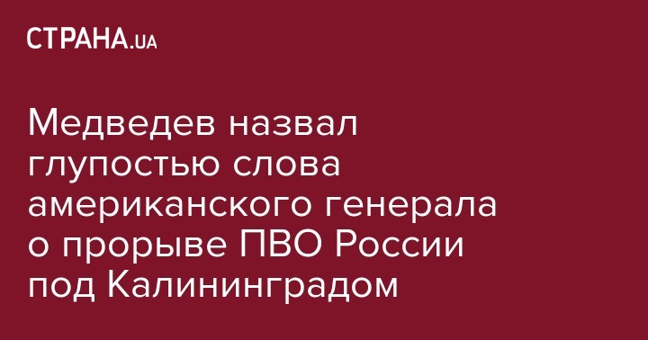 Медведев назвал глупостью слова американского генерала о прорыве ПВО России под Калининградом