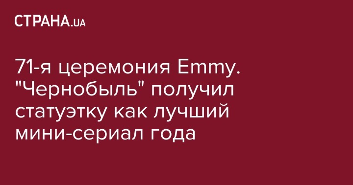 Сериал "Чернобыль" о ядерной катастрофе в Украине в 1986 году получил главную награду премии Emmy в категории "Лучший мини-сериал". Об этом передает Интерфакс со ссылкой на телеканал Fox, который освещал ход 71-й церемониюи вручения наград.